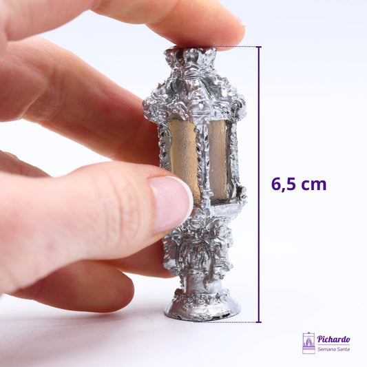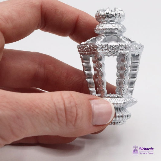 Farol plateado 6,5 cm con pie para pasito de Semana Santa en miniatura